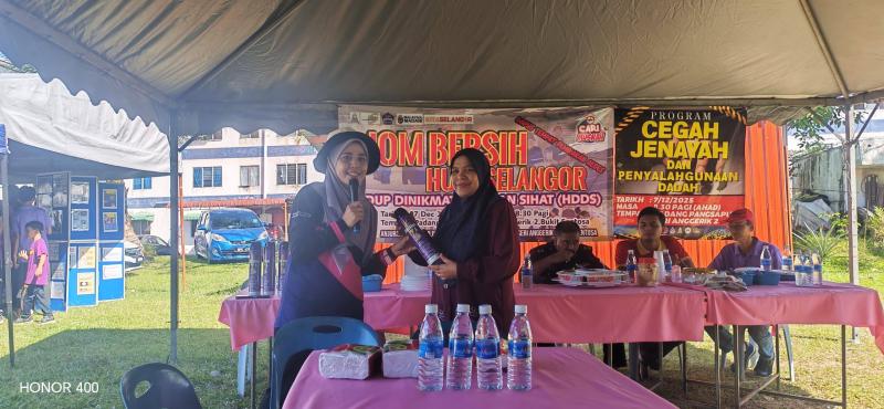 Program ini dianjurkan dengan kerjasama Kelab Rukun Tetangga Pangsapuri Seri Anggerik 2, Jabatan Pengurusan Sisa Pepejal dan Pembersihan Awam (JPSPPA), Ibu Pejabat Polis Daerah (IPD) Hulu Selangor serta Agensi Antidadah Kebangsaan (AADK).