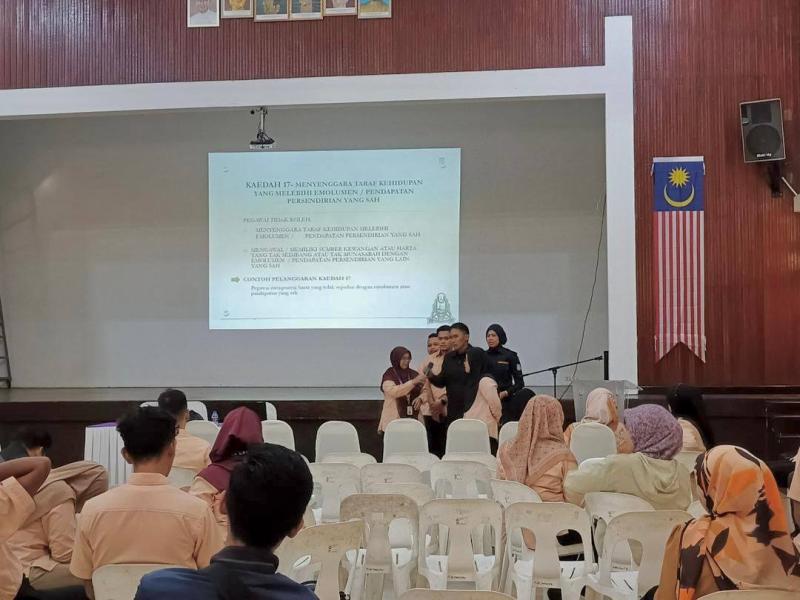 Seterusnya, penerangan mengenai Kaedah-Kaedah Pegawai MPHS (Kelakuan dan Tatatertib) 2023 telah disampaikan oleh Encik Abdullah Shahrul bin Rosli, Ketua Unit Integriti, manakala Arahan Perbendaharaan telah disampaikan oleh Encik Shaiful Rizza bin Haji Piamin, Pengarah Perbendaharaan.