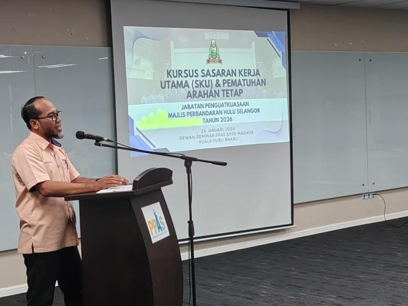 26 Januari, Kuala Kubu Bharu: Jabatan Penguatkuasaan MPHS telah melaksanakan Kursus Sasaran Kerja Utama (SKU) dan Pematuhan Arahan Tetap Jabatan Penguatkuasaan bagi Tahun 2026 yang melibatkan semua anggota Jabatan Penguatkuasaan di PPAS Syed Mashor Kuala Kubu Bharu.