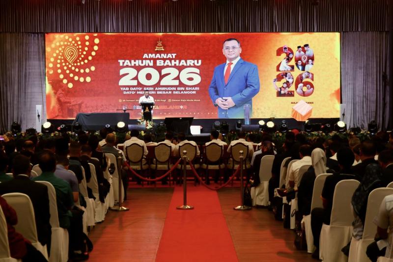 Shah Alam, 26 Januari 2026. Majlis Penyampaian Amanat Tahun Baharu 2026 oleh YAB Dato’ Seri Amirudin Shari, Dato' Menteri Besar Selangor telah diadakan di Dewan Raja Muda Musa, Kompleks Belia dan Kebudayaan Negeri Selangor, Seksyen 7, Shah Alam pagi tadi.