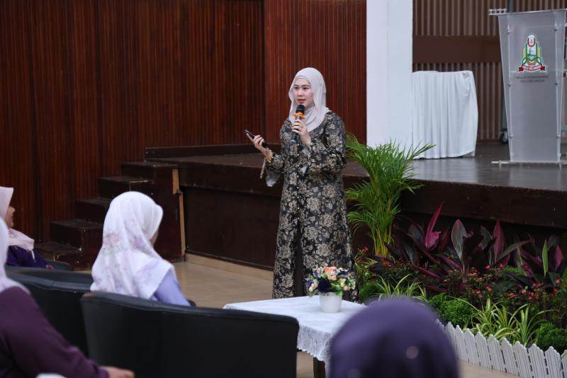 Program diteruskan dengan sesi perkongsian ilmu bertajuk “Wanita Hebat – Bangkit Dengan Harapan, Melangkah Dengan Keyakinan” yang disampaikan oleh penceramah jemputan, Dr. Afifah Hidayah Ahmad Tawfek atau lebih dikenali sebagai DrFie. Perkongsian yang penuh inspirasi ini memberi suntikan motivasi kepada para peserta agar terus membina keyakinan diri, mengembangkan potensi serta berani menghadapi cabaran dalam kehidupan dan kerjaya.