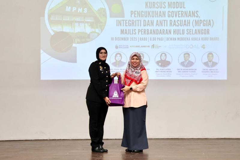 Kuala Kubu Bharu, 10 Disember 2025 – Seramai 130 kakitangan Majlis Perbandaran Hulu Selangor (MPHS) telah menyertai Kursus Modul Pengukuhan Governans, Integriti dan Antirasuah (MPGIA), Majlis Perbandaran Hulu Selangor bertempat di Dewan Merdeka, Kuala Kubu Bharu.