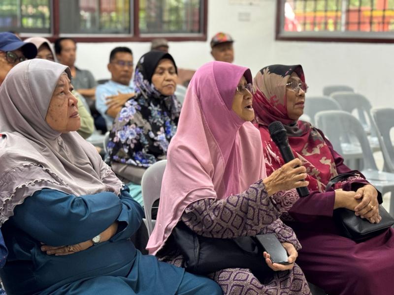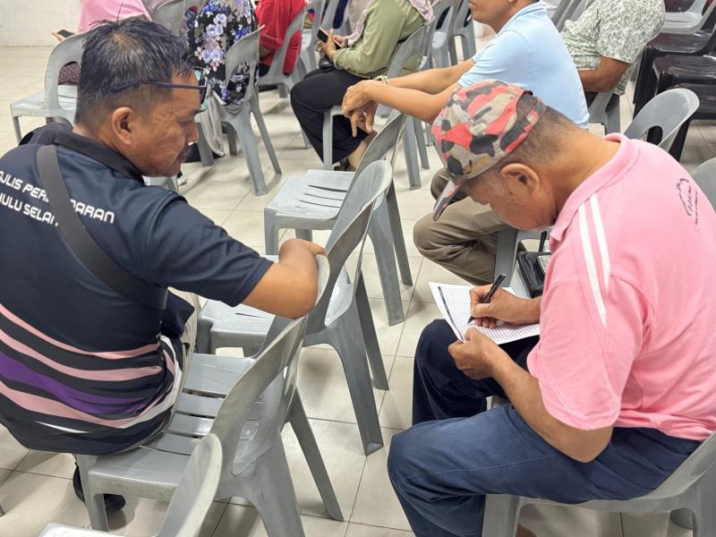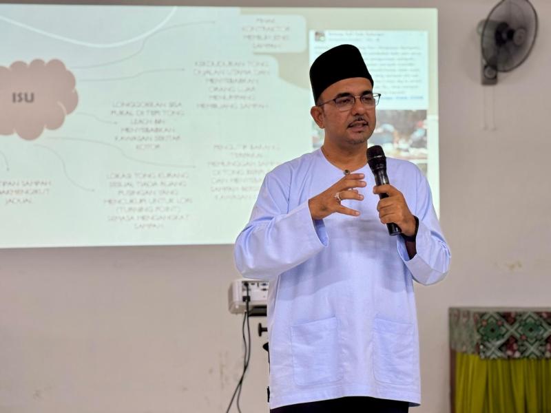 Sesi taklimat dimulakan dengan pembentangan oleh Puan Azmeira bt Abdul Aziz, Penolong Pegawai Kesihatan Persekitaran, Unit Perkhidmatan Bandar, JSPPA MPHS berhubung skop perkhidmatan dan isu berbangkit serta cabaran pengurusan sisa di lapangan. Seterusnya sesi diteruskan dengan perbincangan bersama penduduk bagi menyuarakan pandangan dan berkongsi kebimbangan mereka. Antara isu utama yang dibangkitkan ialah masalah sampah yang dibuang oleh orang luar ke tong komunal kampung, serta lokasi tong yang tidak strategik sehingga menimbulkan risiko keselamatan kepada penduduk dan pengguna jalan.