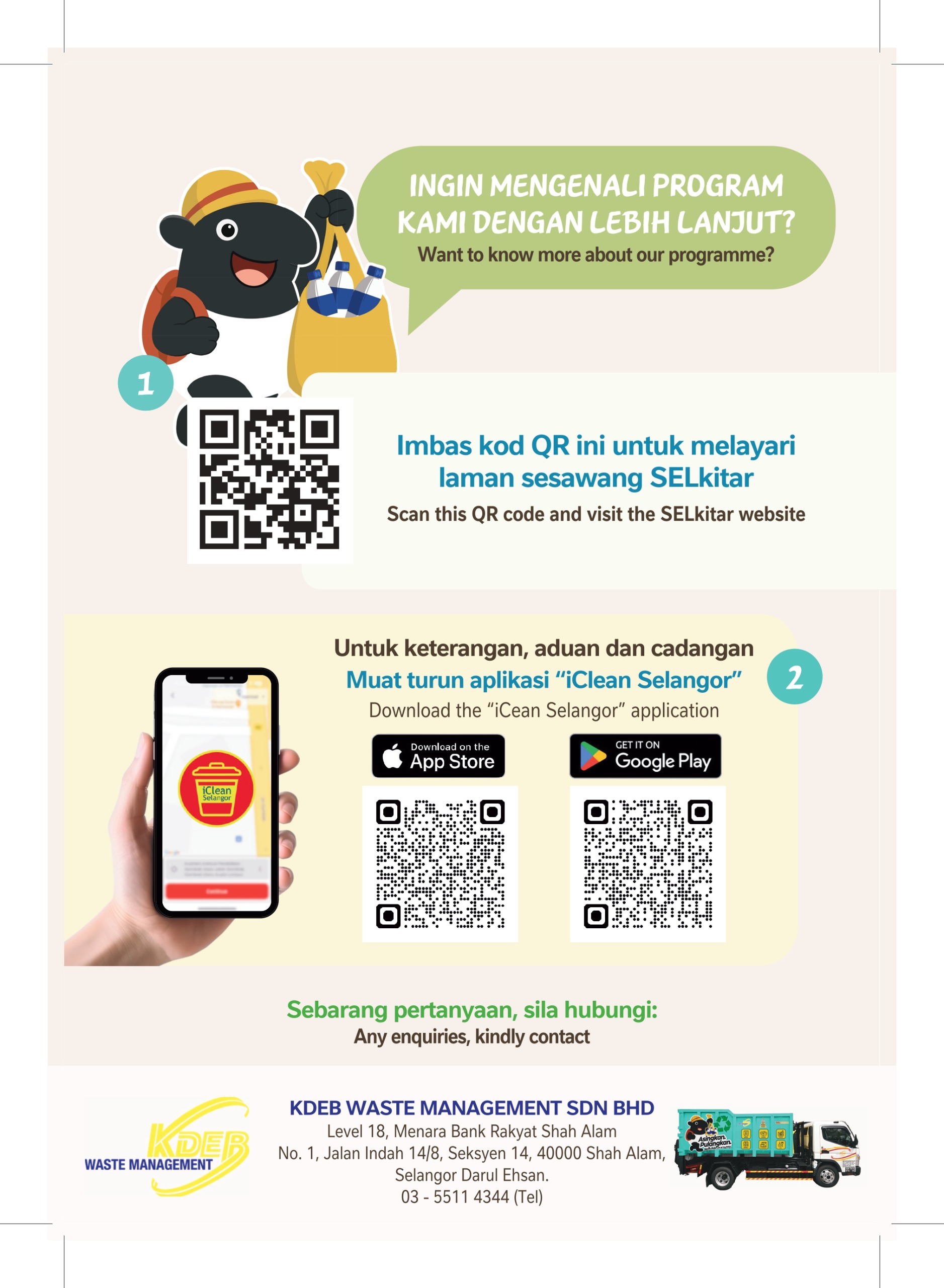 Imbas kod QR untuk maklumat lanjut atau muat turun aplikasi iClean Selangor bagi aduan & pertanyaan.