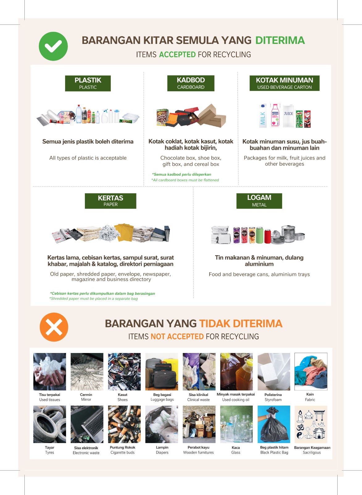 • Tisu terpakai, lampin, kaca, minyak masak terpakai, e-waste, kain, tayar dan lain-lain